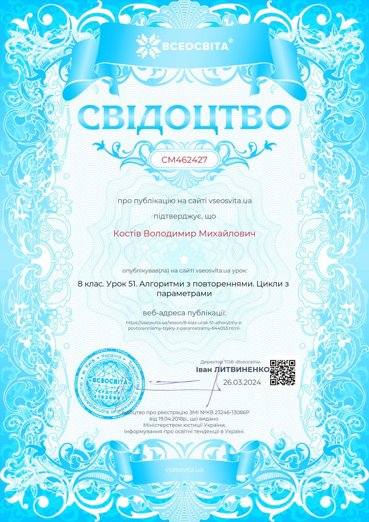 8 клас. Урок 52. Цикл з передумовою
